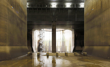 調圧水槽内を音と映像でご体感いただける『流域治水ライトアップコース』が、新たに登場。