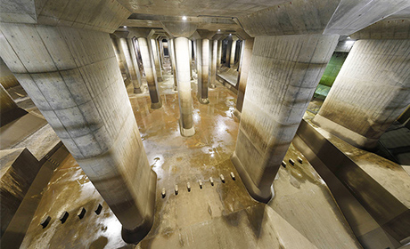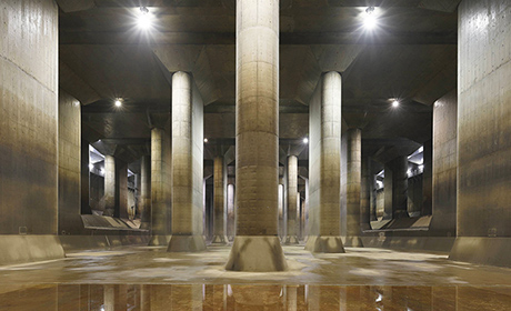 地下神殿で幻想空間が誕生。『流域治水ライトアップコース』