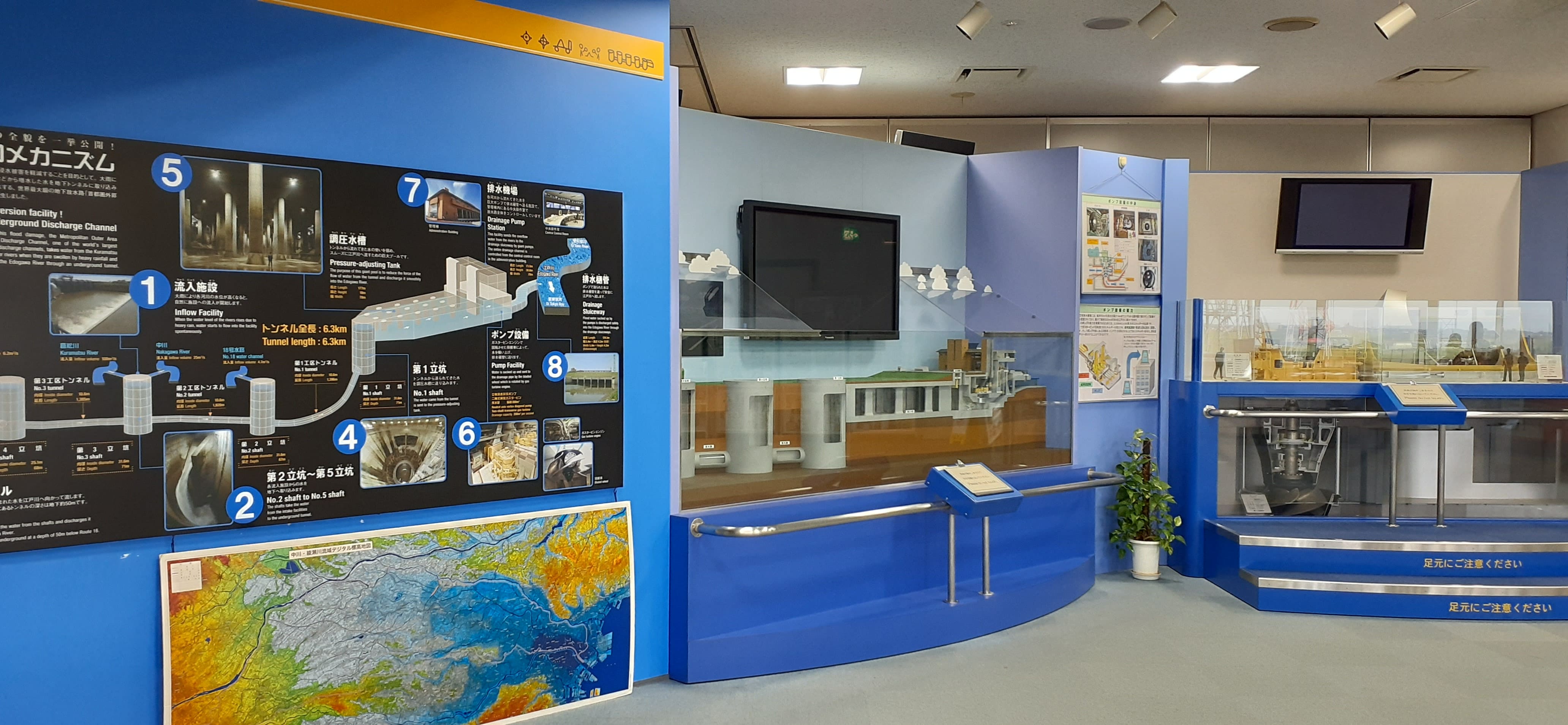 第一立坑から調圧水槽、排水ポンプのインペラ(羽根車)へと水の流れが実感できる見どころ満載のコースです。