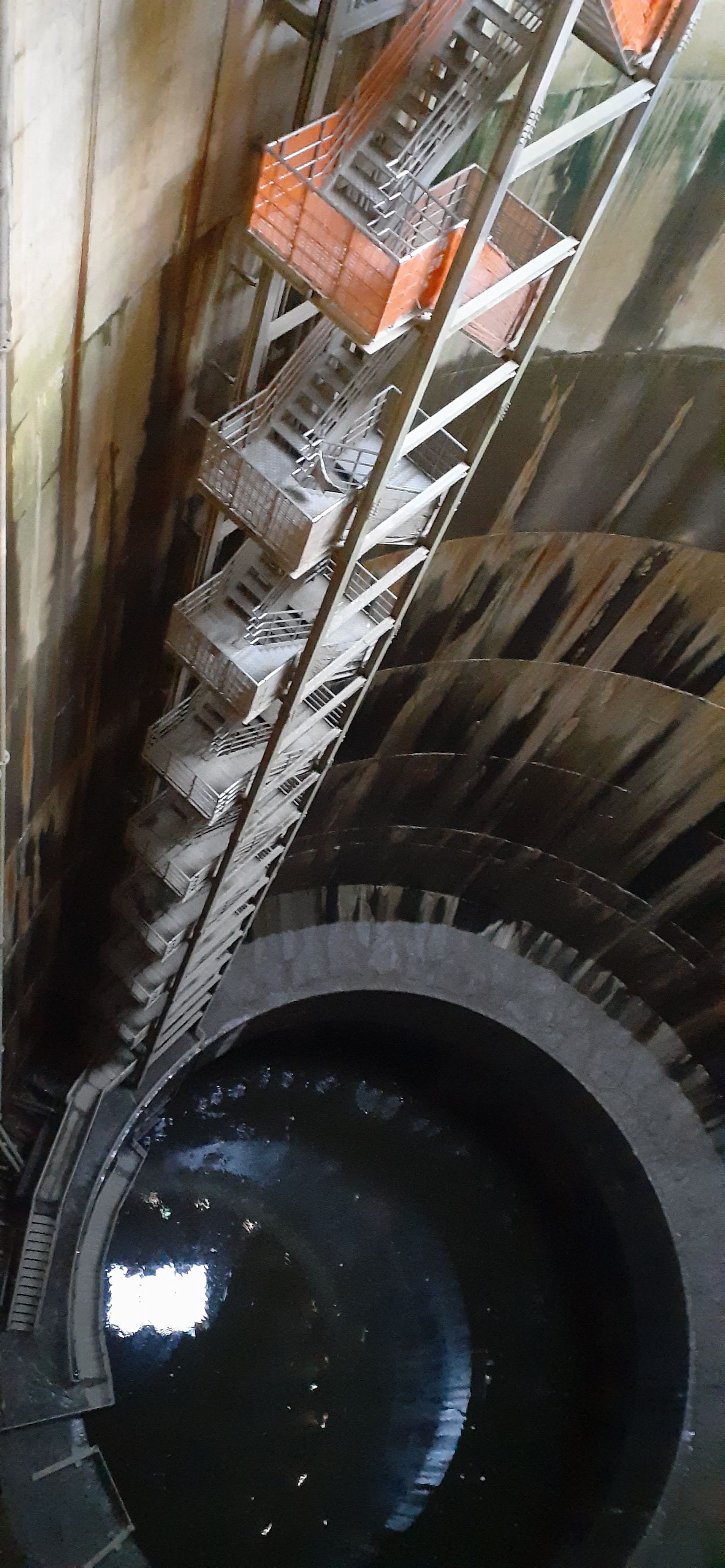 お客様からのリクエスト第一位、遂に開放された調圧水槽最奥部にある巨大なインペラ(羽根車)を特別装備でご見学いただきます。